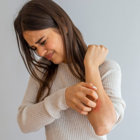 Reddish or pinkish spots of raised, thick, scaly skin tissue generally is indicative of the presence of psoriasis. These affected areas are frequently noticed on the scalp, elbows, and knees, but they could be found nearly anywhere on a patient’s body. Call our Greenville, SC facility to have your symptoms assessed.